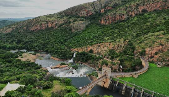Hartbeespoort’s history centers on the 1923 construction of the Hartbeespoort Dam, a project that transformed a dry area into an agricultural and recreational hub known locally as “Harties”. Initiated by General Hendrik Schoeman, the dam provided irrigation for farms along the Crocodile River and, despite construction delays from WWI and floods, became a significant engineering feat and a popular tourist destination. The town of Hartbeespoort developed around the dam, with Schoemansville being its oldest neighborhood.